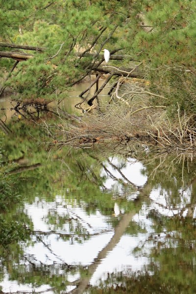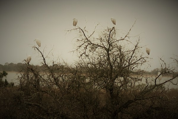 Even on the cloudy, cold days of our visit, we saw amazing sights like these egrets branching out. (Checking back the next day, they had branched off!)