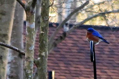 Two minutes later they all flew away. Since then? No bluebirds. But what a special gift that lifted our spirits and reminded us of Mama: bluebirds were her favorites, a sighting always cause for celebration.