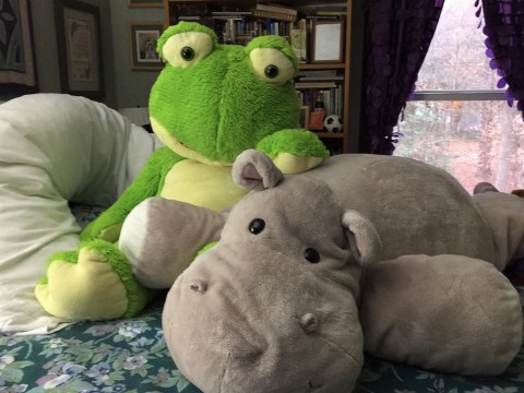 Methinks being childlike is not just about clutching our teddy bears or massive stuffed hippos like Augie, gifted a few years ago by my sis, who reveled in squeals of delight from big-kid me. Augie, so named in honor of Saint Augustine of Hippo, also serves as a comfy backrest.