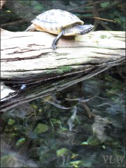 A meandering turtle (sticking his neck out) in the Japanese Garden pond @ Maymont Park in Richmond, VA. (As a Monet groupie, couldn’t believe how this photo turned out more like a painting!)