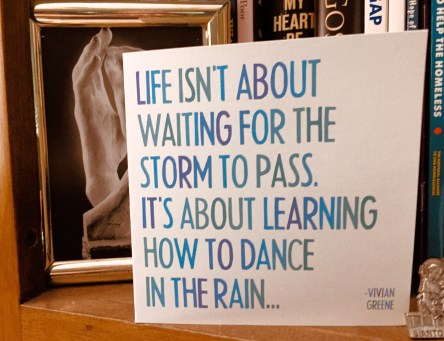 “Life isn’t about waiting for the storm to pass. It’s about learning how to dance in the rain.” Vivian Greene
