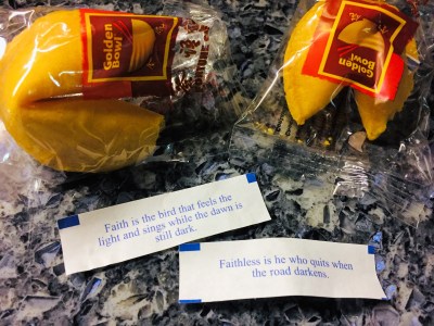 Liked the fortune cookie wisdom. Faith is a wonderful thing to have.