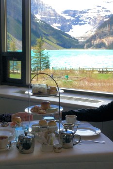 Enjoying delectable tea and treats in the elegant dining room overlooking Lake Louise is an experience we’ll never forget.
