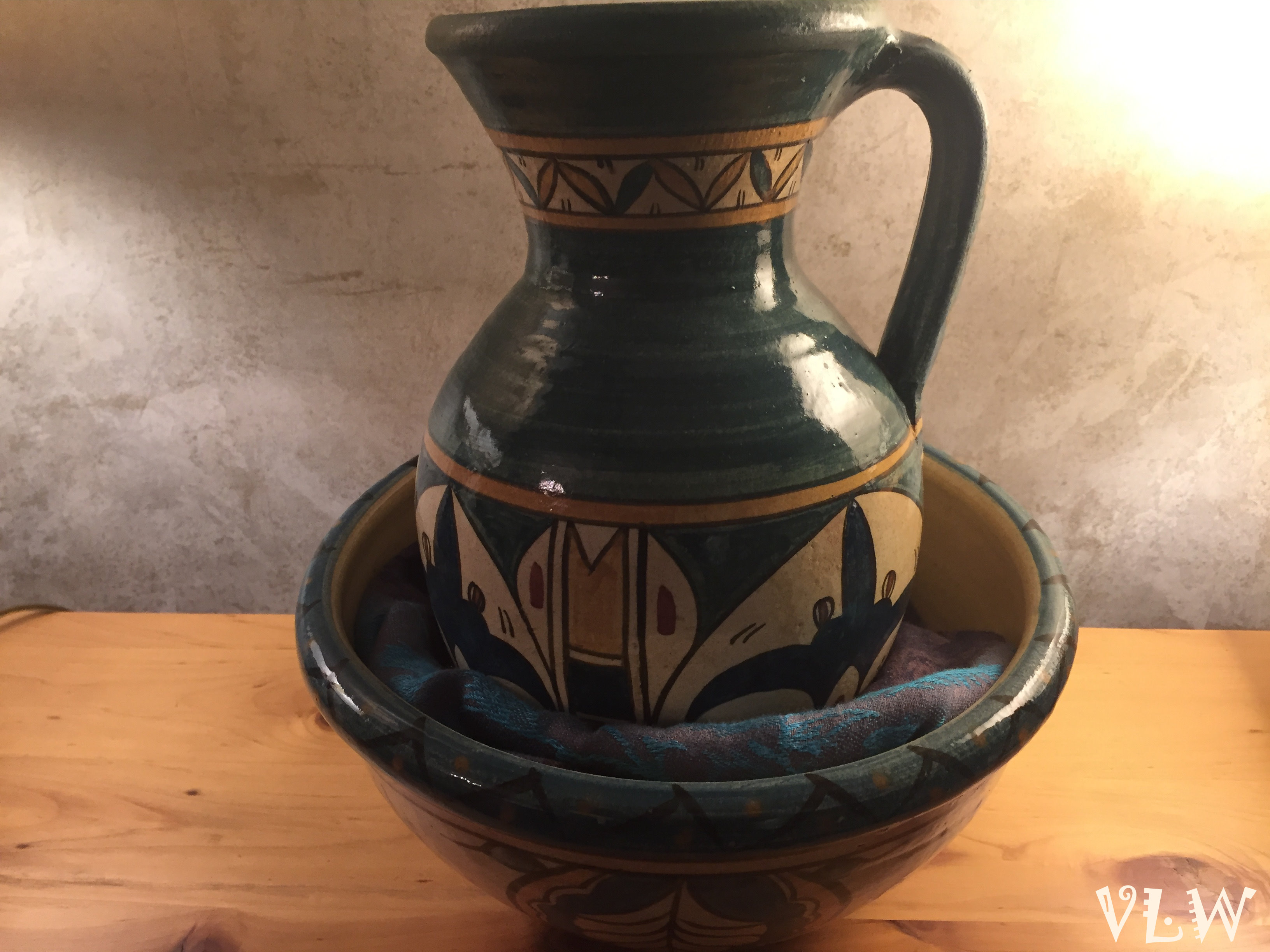 Bethlehem Pottery bowl and pitcher landscape
