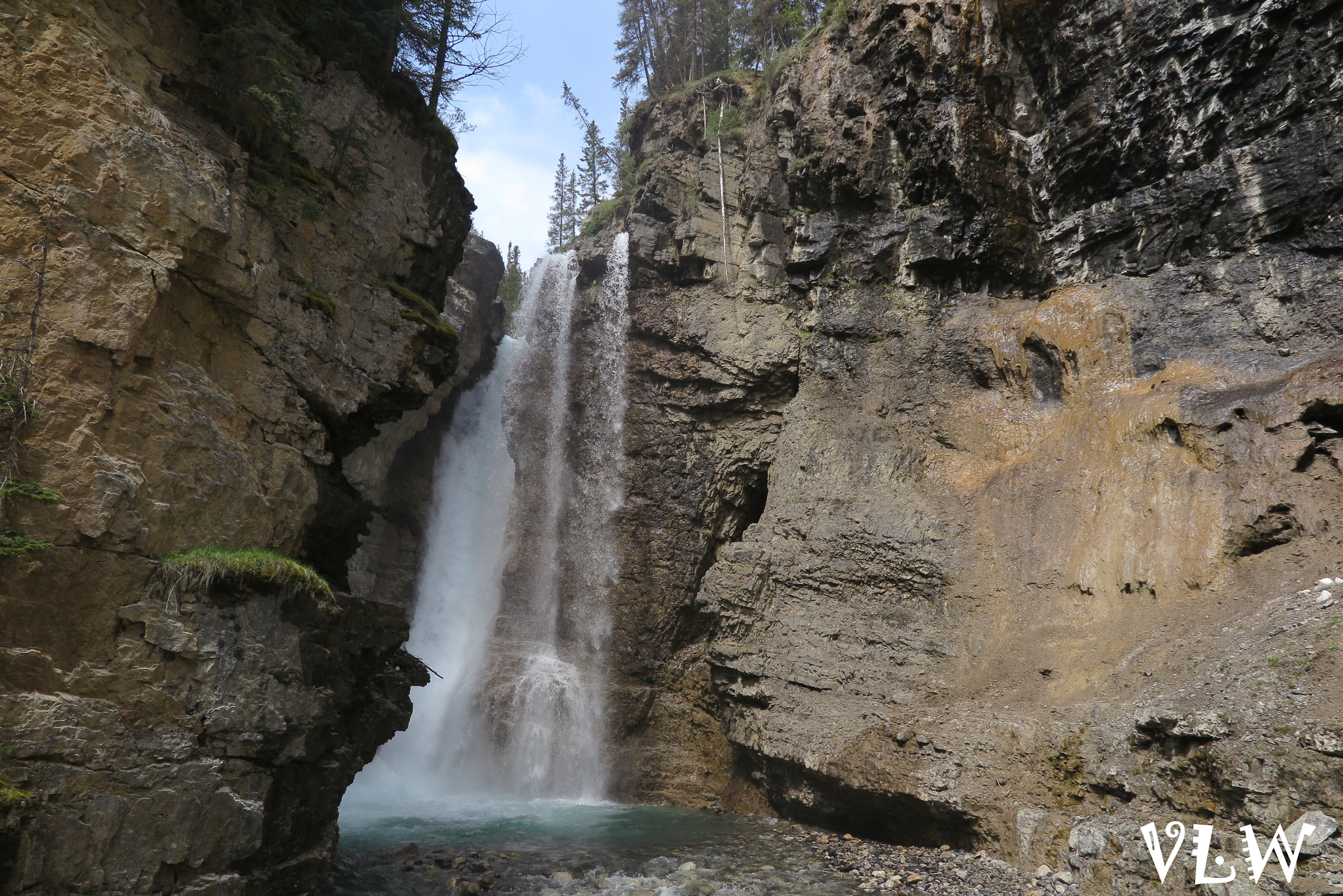 CAN Banff Johnston Canyon waterfall pebble view